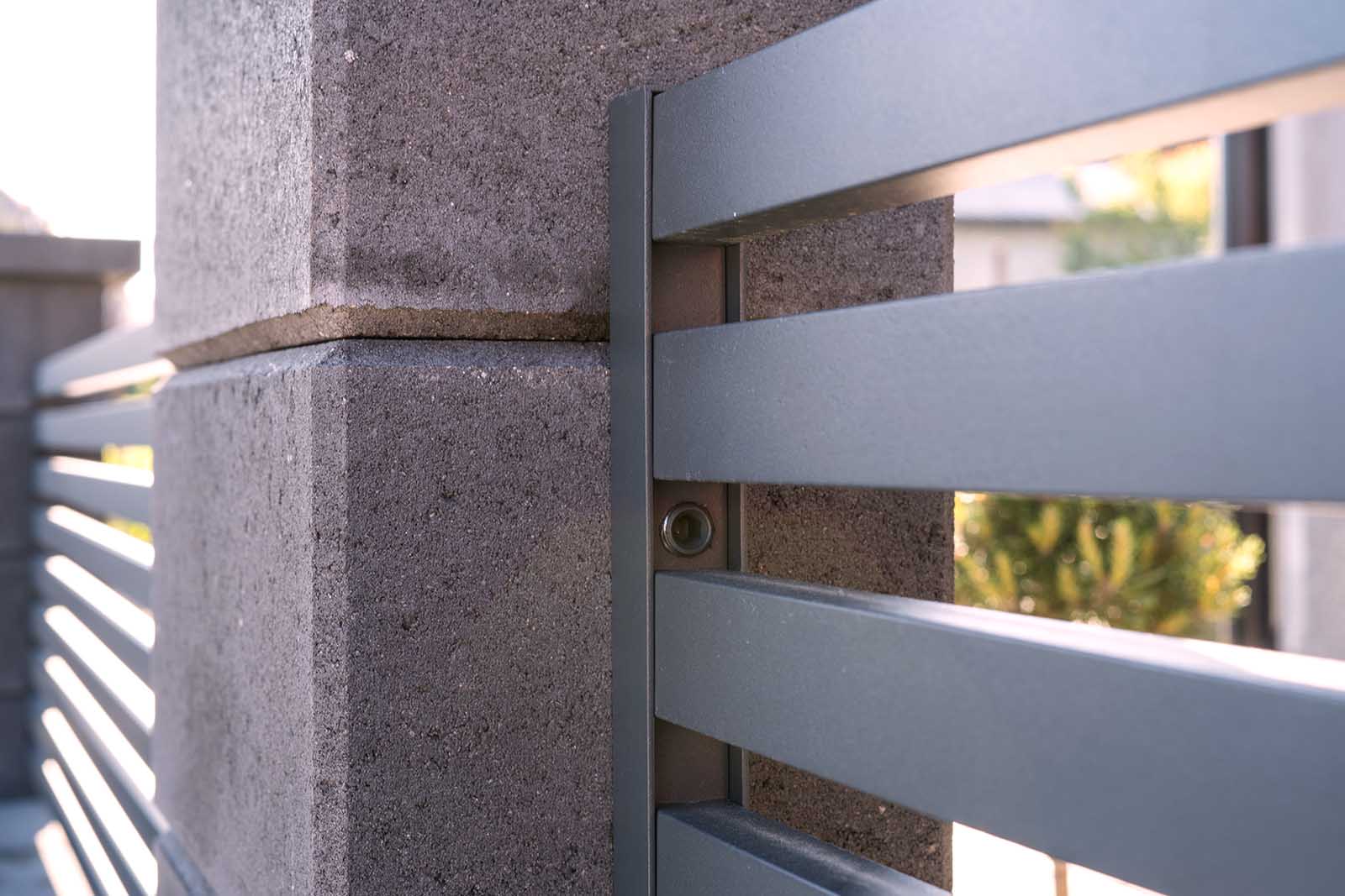 V této realizaci si zákazník zvolil hliníkový plot s motivem Viana ve stříbrné hliníkové barvě, která dodává celému exteriéru moderní lesk. Oplocení se skládá z precizně provedené posuvné brány po kolejnici, která zajišťuje pohodlný vjezd, a jednokřídlé vchodové branky. Celkový design harmonicky koresponduje s moderní architekturou domu, čímž poskytuje esteticky příjemné a efektivní řešení.