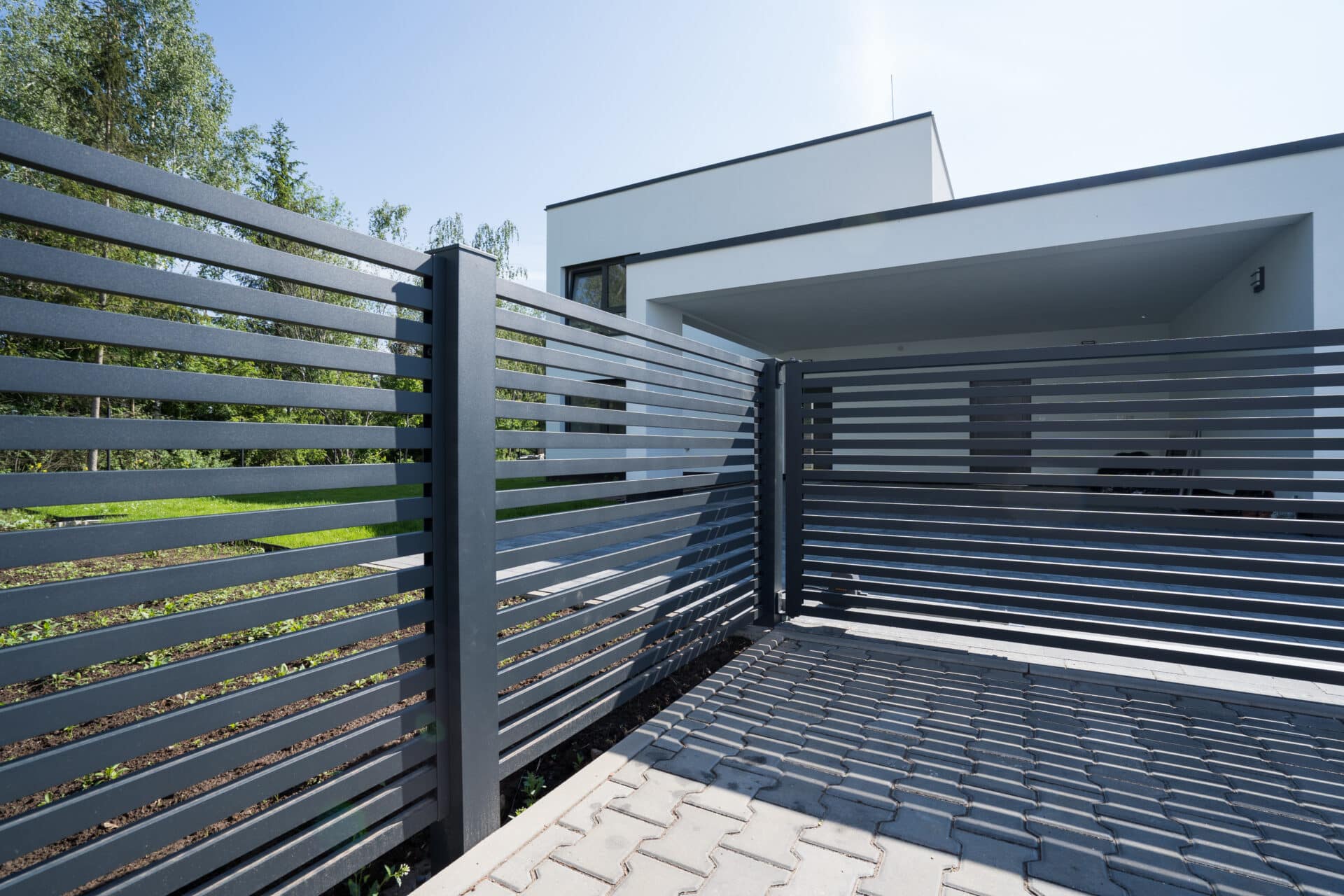 V této realizaci si zákazník vybral hliníkový plot s motivem Avila v moderní šedé antracitové barvě. Oplocení zahrnuje dvoukřídlou otočnou bránu, jednokřídlou branku a tři plotové dílce, které jsme pevně ukotvili mezi betonové sloupky, které si zákazník již předem připravil. Výsledkem je funkční a esteticky vyvážené oplocení s důrazem na jednoduchost, odolnost a nadčasový styl.