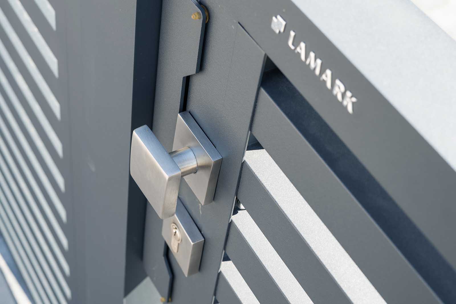 Hliníková dvoukřídlá otočná brána LAMARK | Motiv Avila | Šedá grafitová barva | Hliníkové sloupky LAMARK