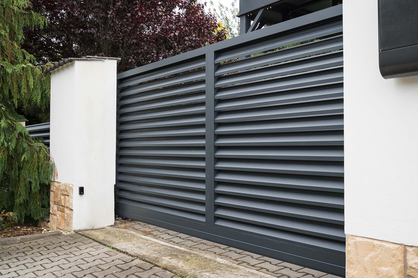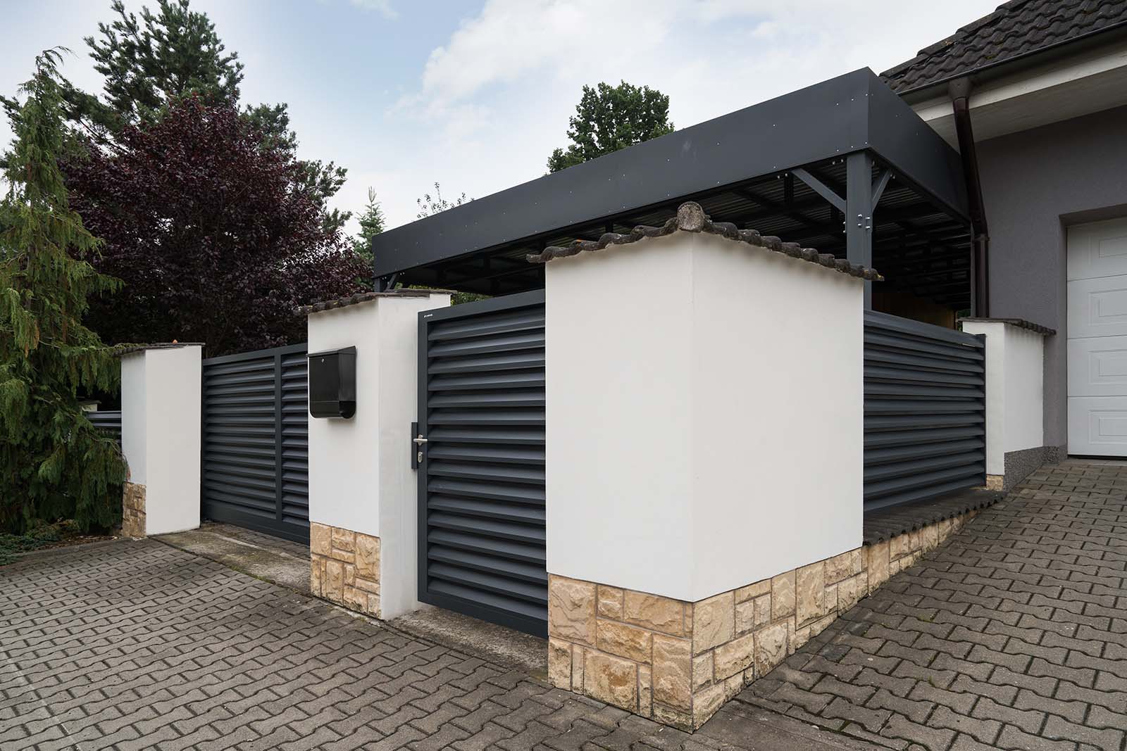 V této realizaci si zákazník zvolil tahokov plot s motivem Miami v oblíbené šedé antracitové barvě. Oplocení se skládá z pěti plotových dílců, které jsme pevně usadili mezi zděné sloupky. Součástí realizace je také otočná dvoukřídlá vjezdová brána a jednokřídlá vchodová branka, které harmonicky doplňují celkový design oplocení a zajišťují funkční a atraktivní řešení.