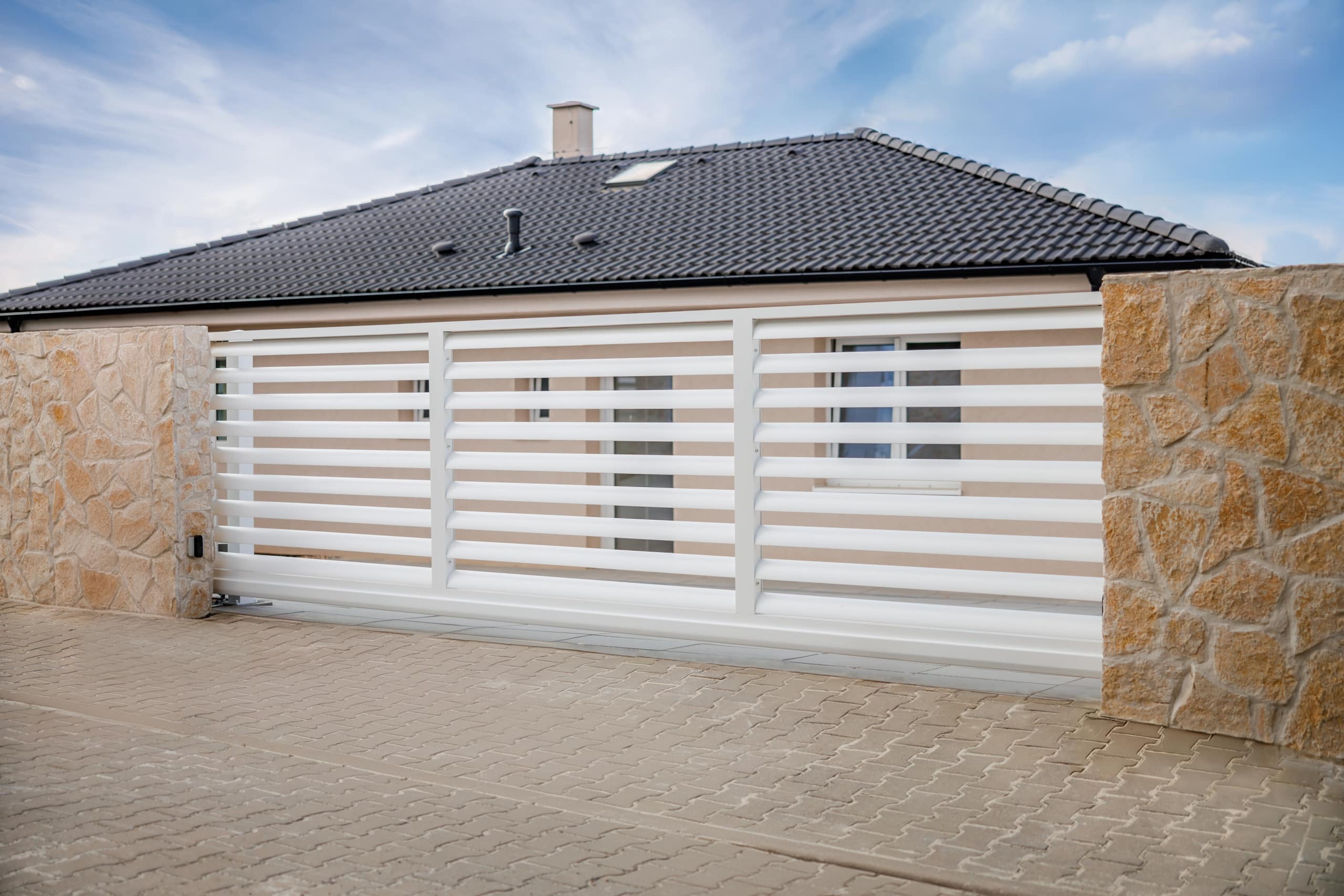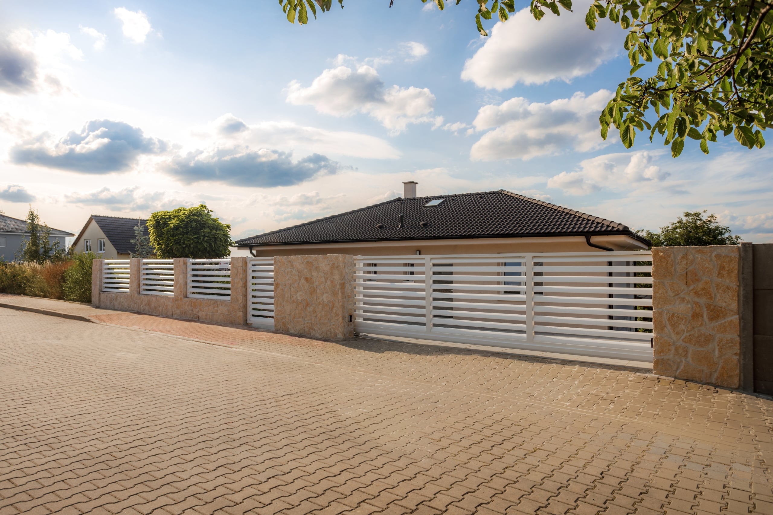 V této realizaci si zákazník zvolil hliníkový plot s motivem Viana Air v bílé polární barvě, která působí svěže a nadčasově. Oplocení tvoří tři plotové dílce precizně osazené mezi zděné sloupky připravené zákazníkem, samonosná posuvná brána pro pohodlný vjezd a jednokřídlá vchodová branka. Všechny prvky jsme zákazníkovi vyrobili na míru tak, aby spolu perfektně ladily a tvořily jednotný a esteticky čistý celek.