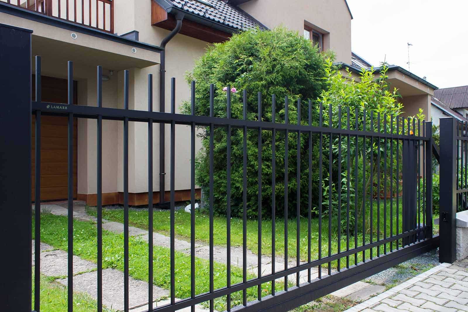 Kovaný plot LAMARK | Kovaná jednokřídlá branka LAMARK | Motiv Portoriko | Černá kovářská barva | Hladké provedení | Bez nýtů | Rovné zakončení | Ocelové sloupky LAMARK