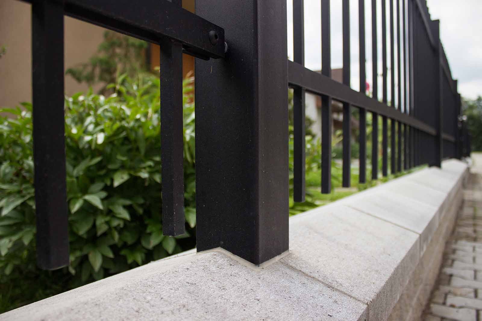V této realizaci padla volba na kovaný plot s motivem Portoriko v moderním hladkém provedení bez nýtů a patinování, zakončený rovnou linií pro čistý a nadčasový vzhled. Oplocení v černé kovářské barvě tvoří sedm plotových dílců, usazených mezi ocelové sloupky LAMARK pro maximální stabilitu. Nechybí ani samonosná posuvná brána a jednokřídlá branka, jejichž provedení přirozeně navazuje na celkové řešení a zajišťuje jednotný, funkčně i vizuálně promyšlený výsledek.