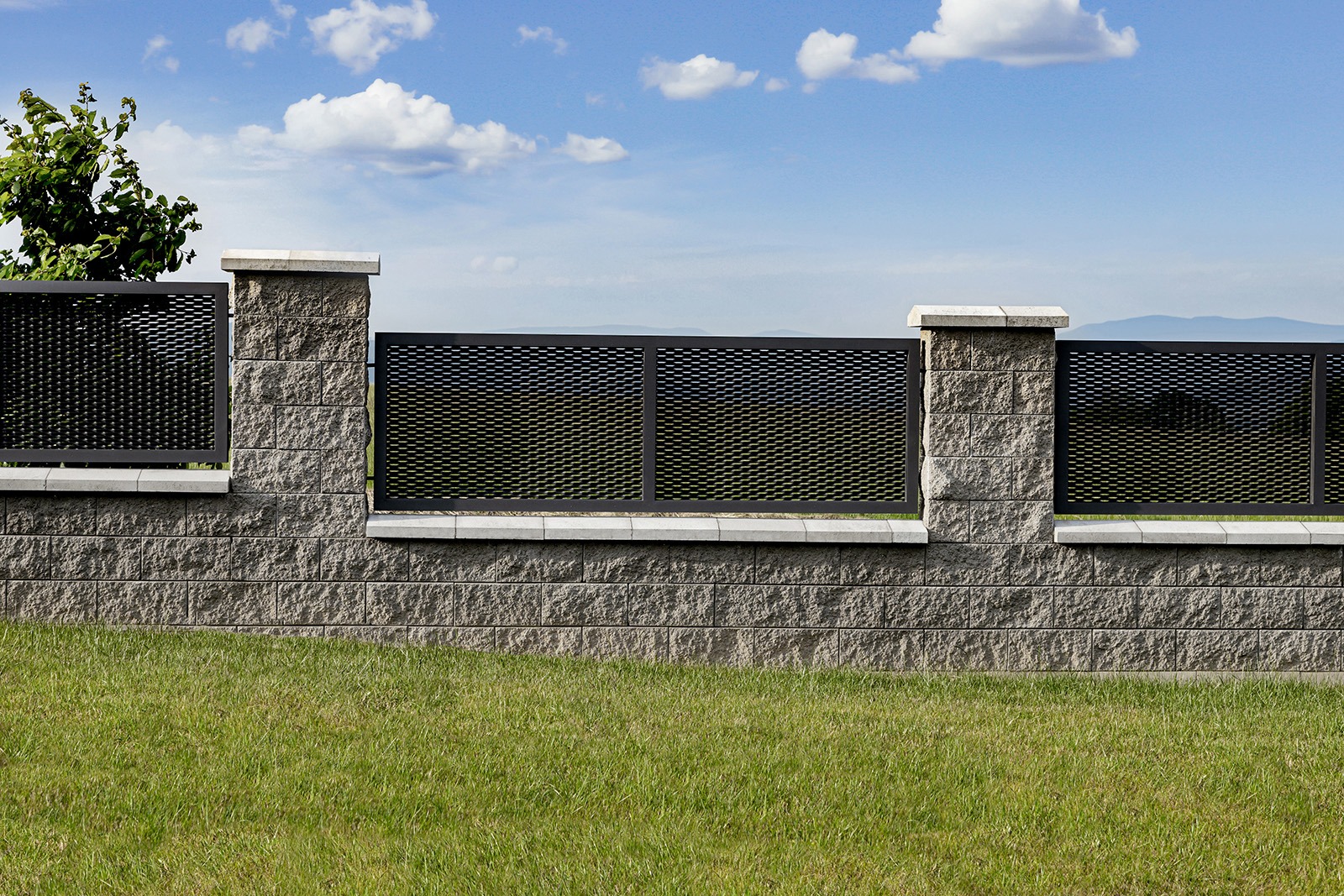 V této realizaci si zákazník zvolil kovaný plot s motivem Lincoln a elegantním dekorem Lages. Oplocení tvoří pět plotových dílců osazených mezi zákazníkem připravené zděné sloupky, samonosná posuvná brána a jednokřídlá vchodová branka. Celé oplocení jsme vyrobili v černé kovářské barvě bez patinování, s okovanými konci a spojili pomocí nýtů.