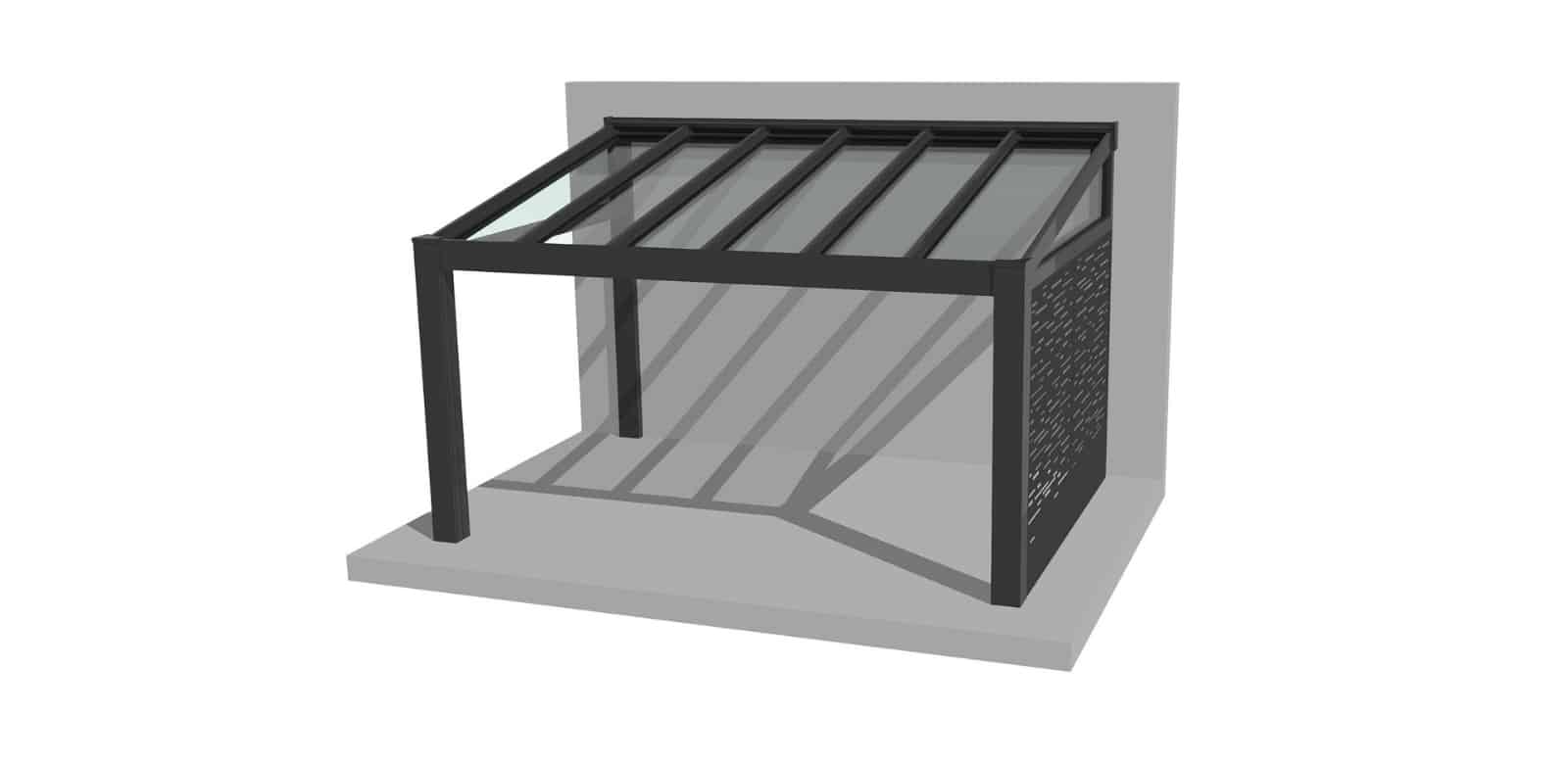 Pergola se skleněnou střechou LAMARK | Pevné boční stínění | Screenové rolety